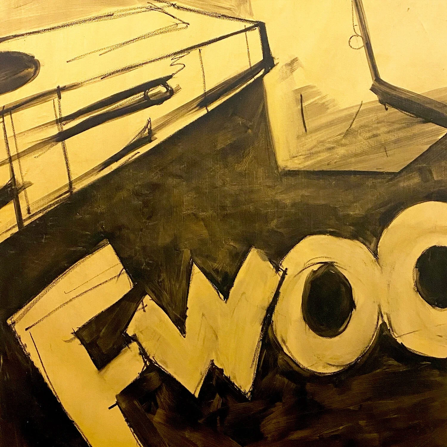 Oblivion — oil, mixed media, and plastic, 48x48 inches